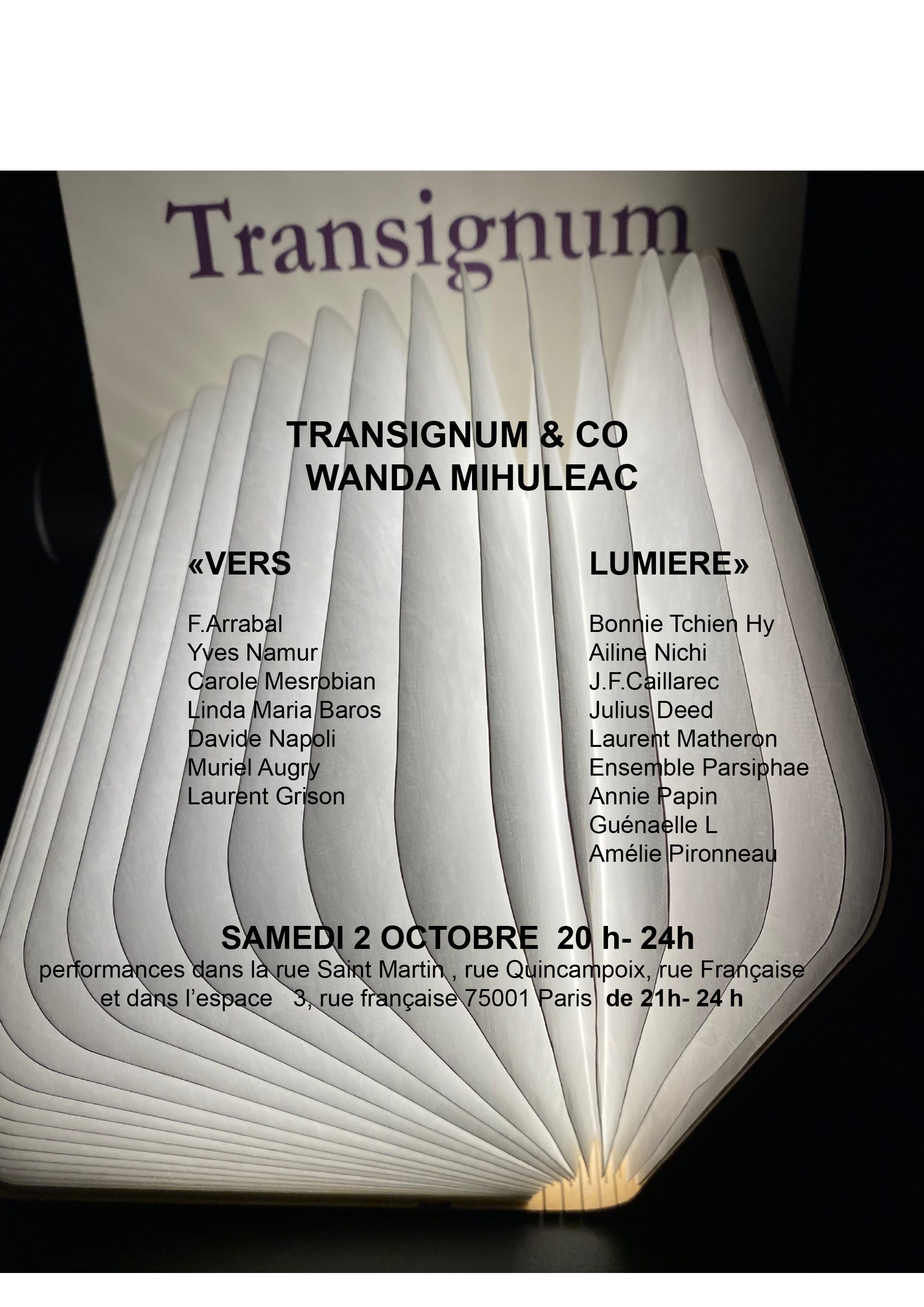 Déambulation poétique proposé par les éditions Transignum – Rue Quincampoix à 21h00
